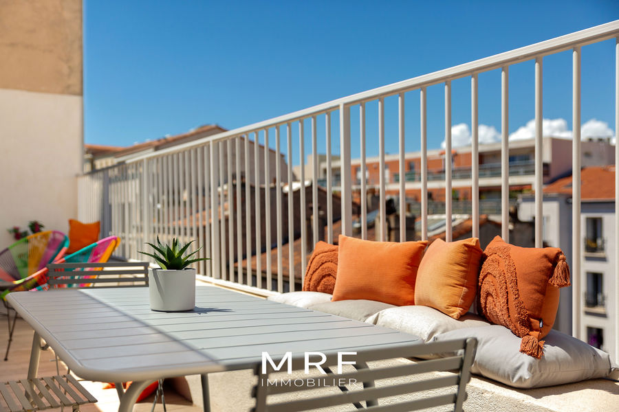 Cet appartement fraichement rénové de 127m² avec terrasse plein ciel de 22m² prend place en dernier étage d’un petit immeuble entièrement restructuré du quartier de Longchamp.
