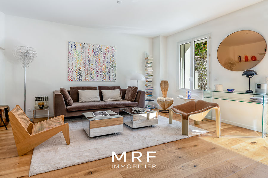Cet appartement entièrement rénové de 50 m² prolongé de 52 m² d’extérieur prend place au rez-de-chaussée d’une petite copropriété de la fameuse Corniche Kennedy.